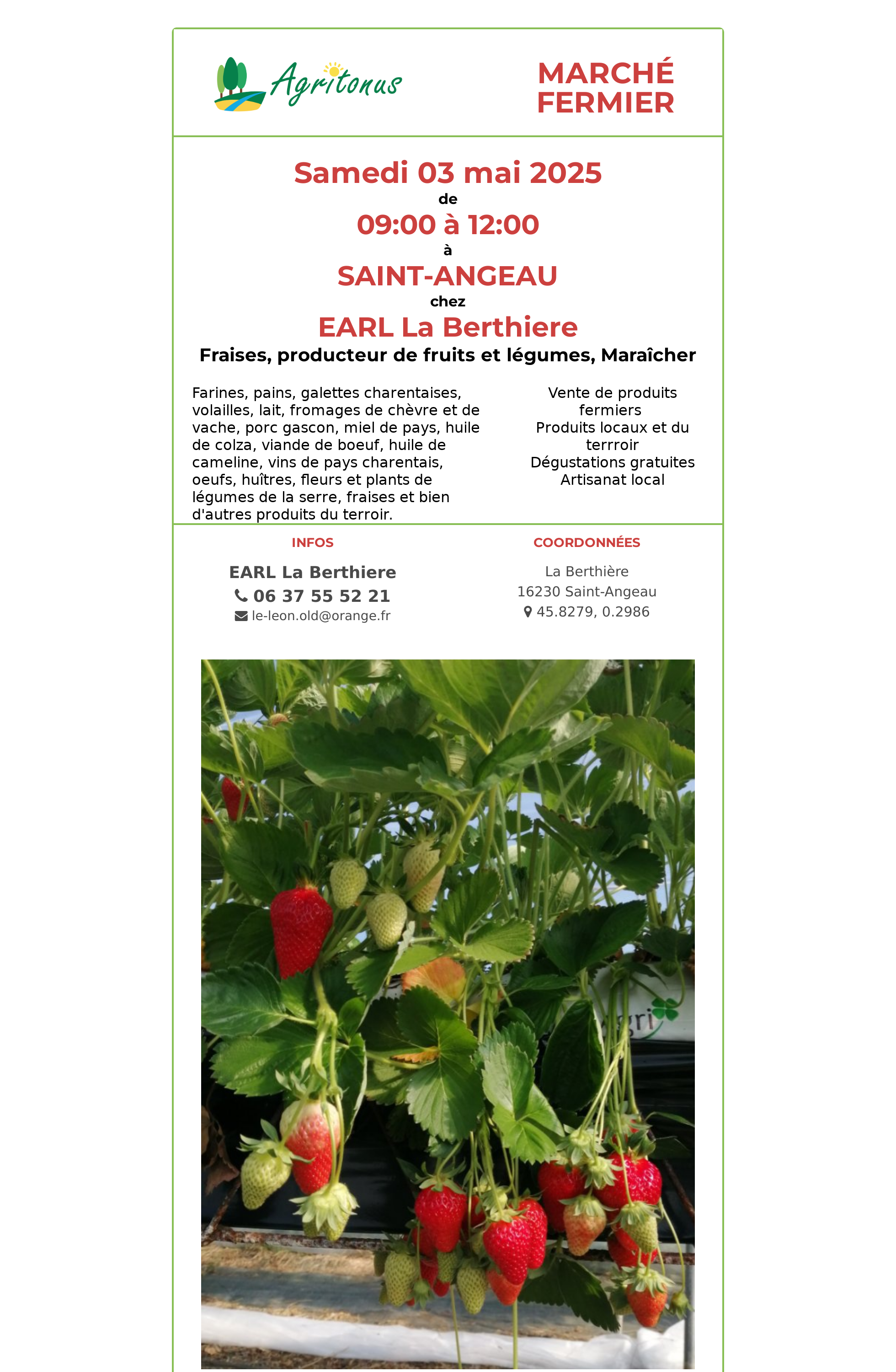 Marché Agritonus le samedi 3 mai à Saint-Angeau